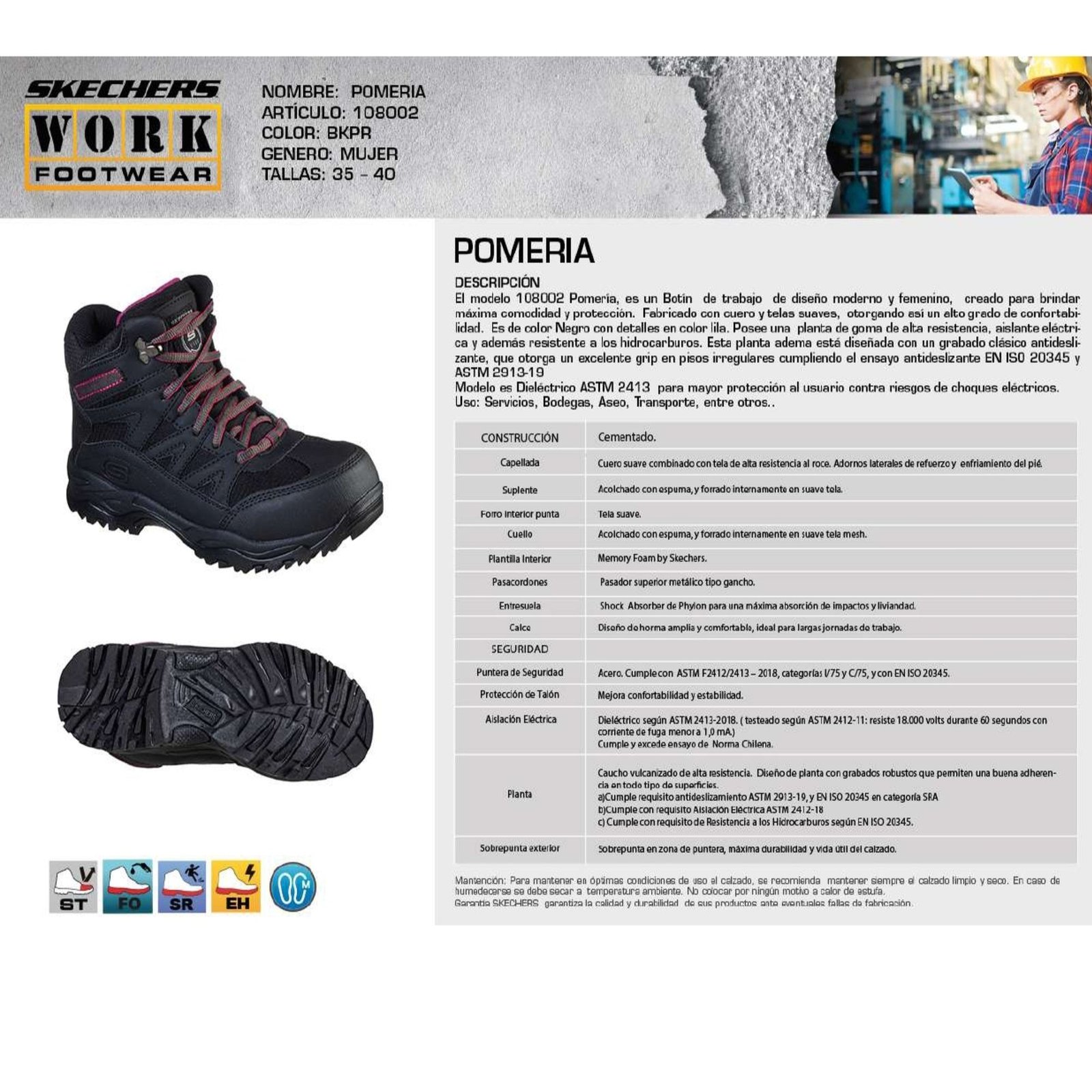 Es un modelo de corte alto con diseño moderno y femenino, creado para brindar máxima comodidad y protección.