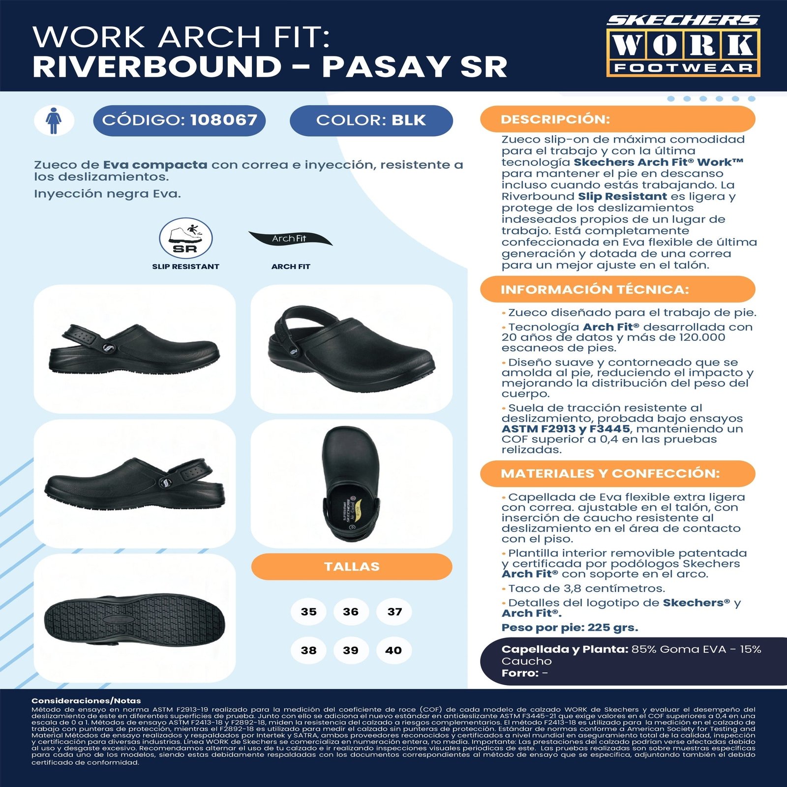 • Suela antideslizante certificada, para un agarre seguro en superficies resbaladizas.